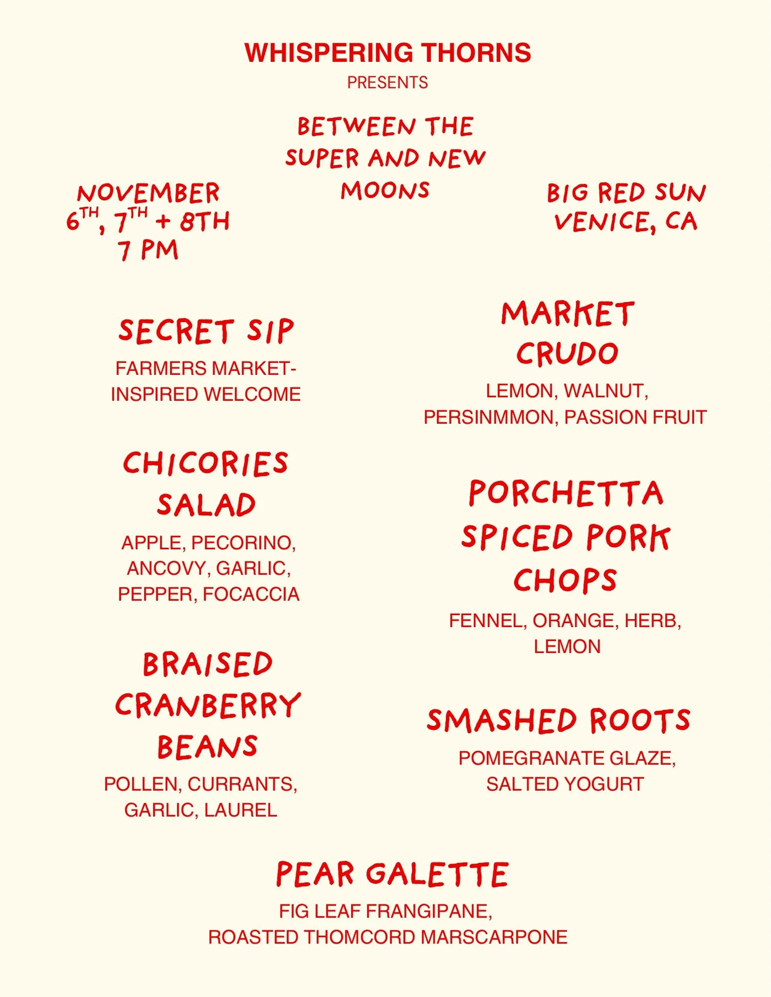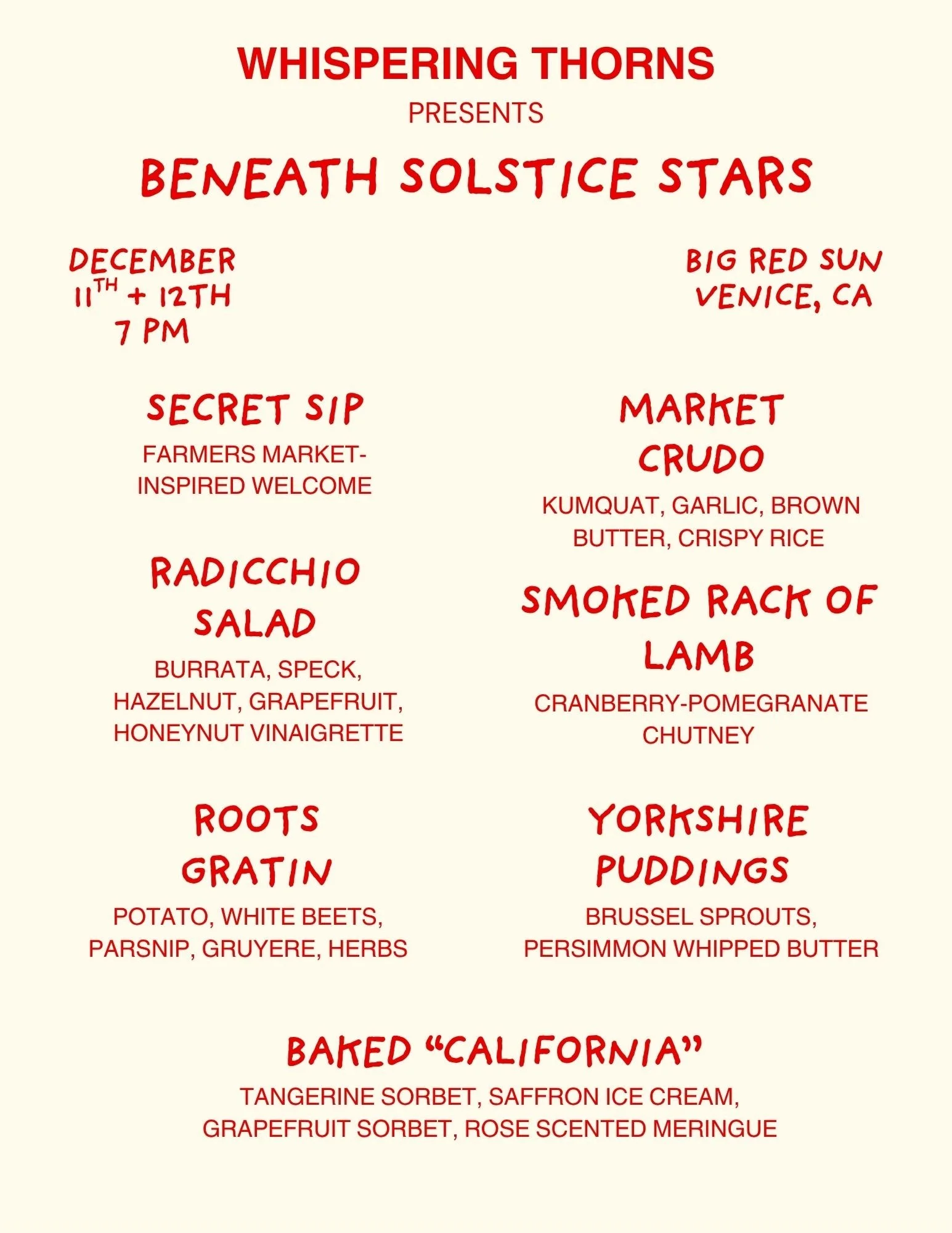 "The principle that underlies Whispering Thorns—the deep roots beneath the limestone of the riverbed, as some say in Texas—is a sacred understanding: whether we are brands, neighbors, or clients, we gather with intention. We come together to share, to connect, and to learn—not as a transaction, but as a radical act of service to one another. In the simple ritual of a shared meal, we weave a tapestry of belonging, creating moments that are not rushed but deeply felt. Here, in this garden of stories and flavors, we nourish not just the body, but the spirit, making slowly, remembering fully, and leaving changed."